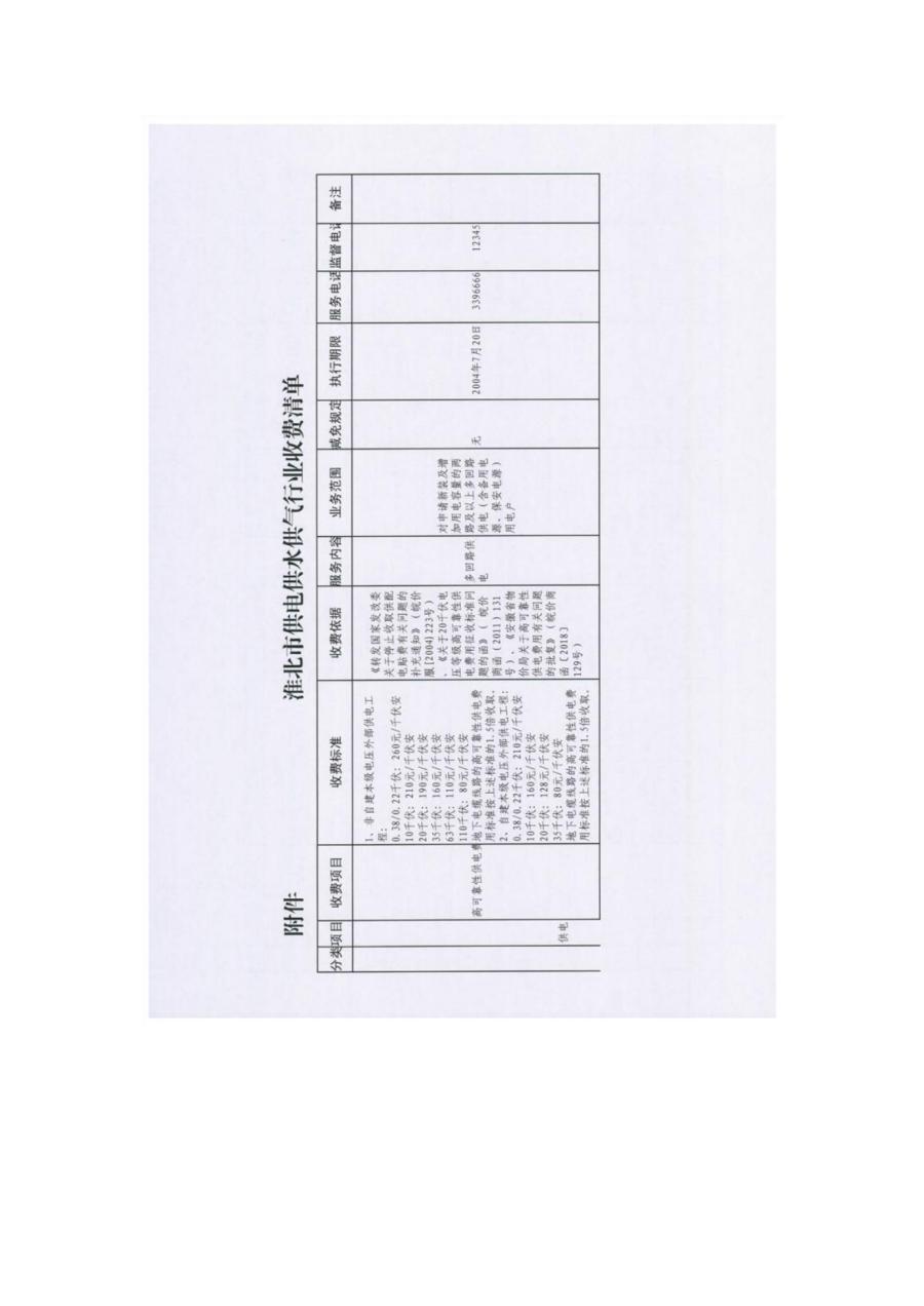 關(guān)于淮北市供電供水供氣行業(yè)收費(fèi)項(xiàng)目目錄清單公示的通知