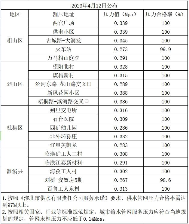 2023年4月12日水壓信息公開