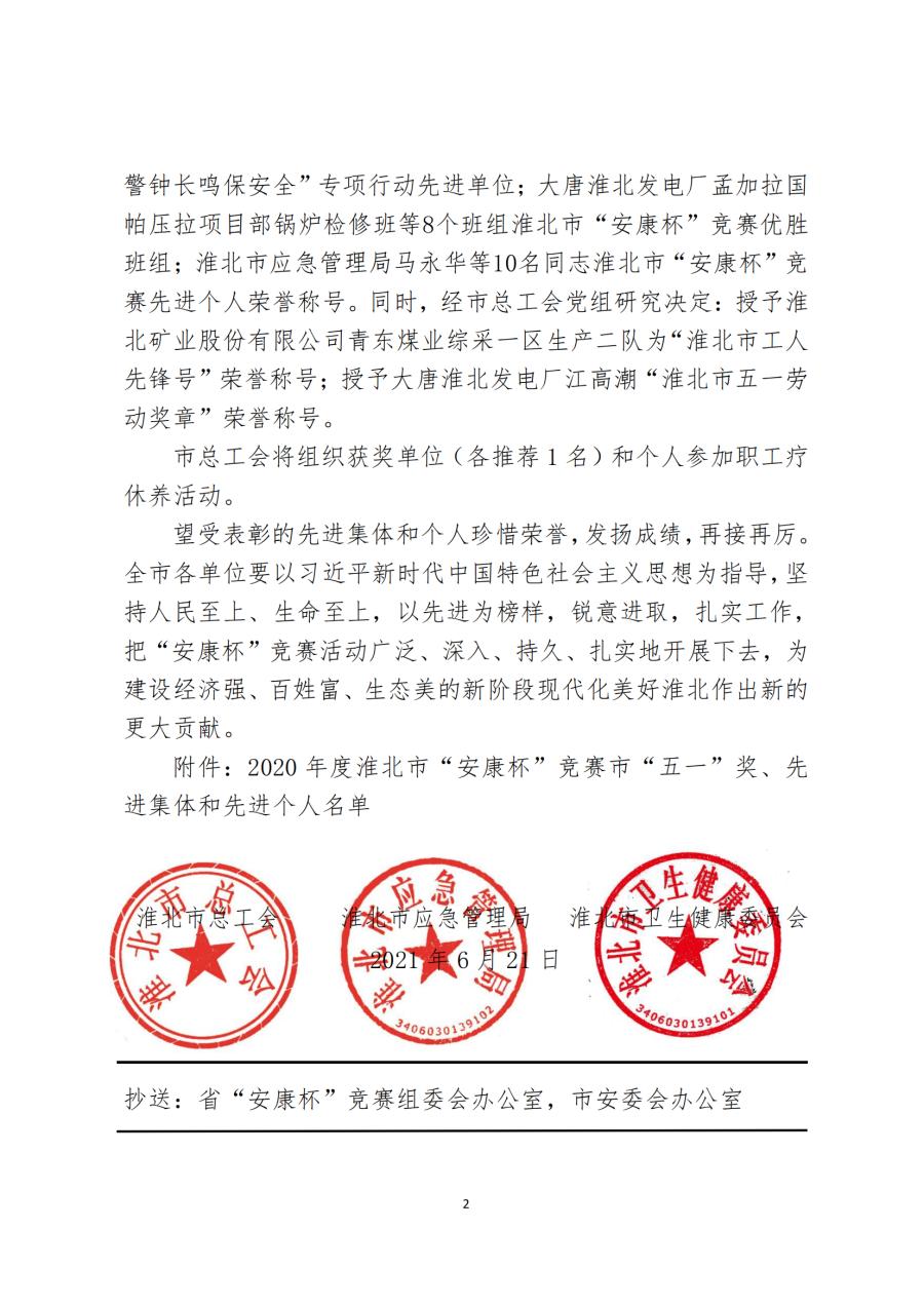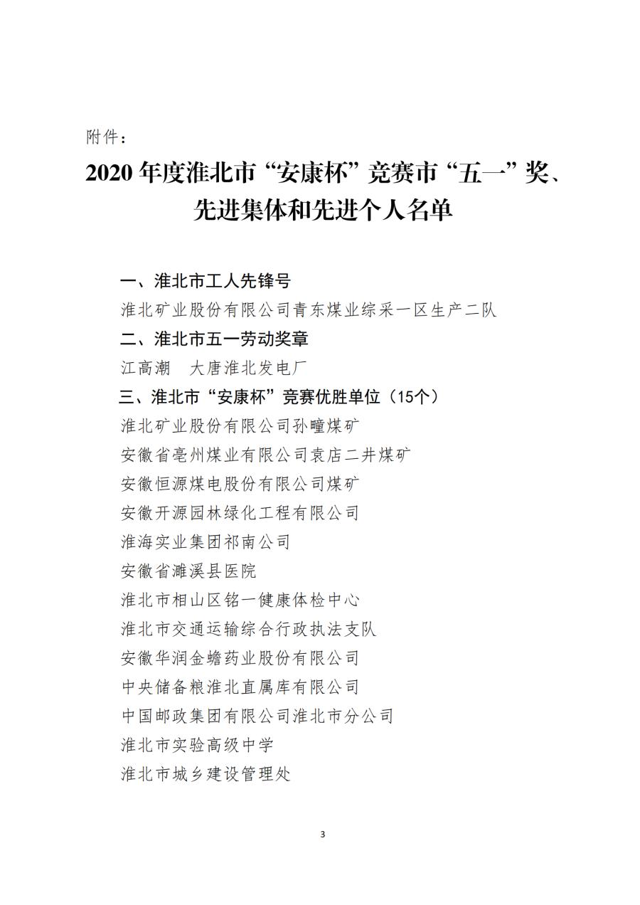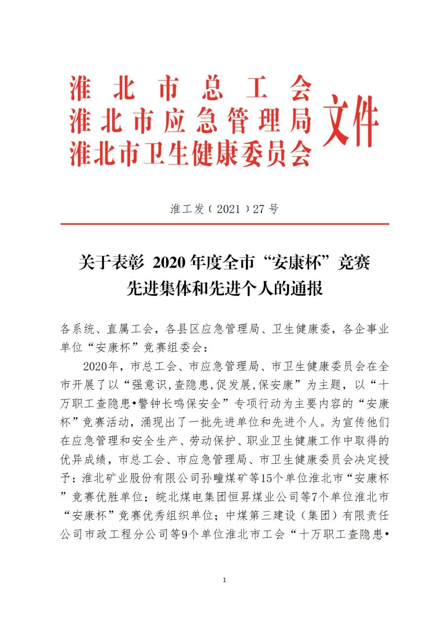 關于表彰 2020 年度全市“安康杯”競賽 先進集體和先進個人的通報