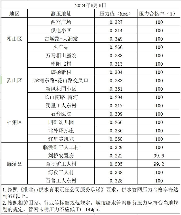 2024年6月6日水壓信息公開
