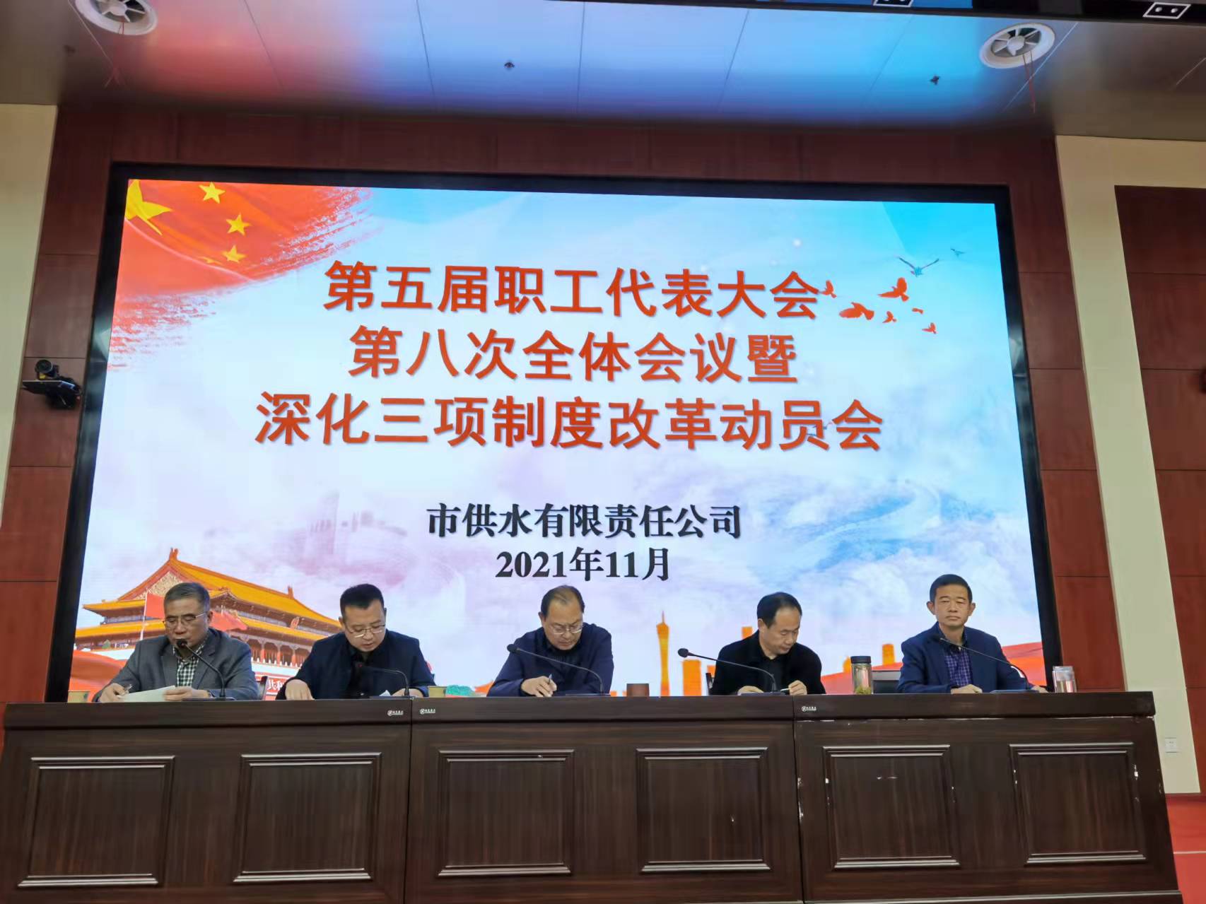 11月17日,供水公司召開第五屆職工代表大會第八次全體會議暨深化三項制度改革動員會。會議由公司工會主席陳升遠主持,公司領導班子成員,全體中層管理人員及職工代表參加了會議。